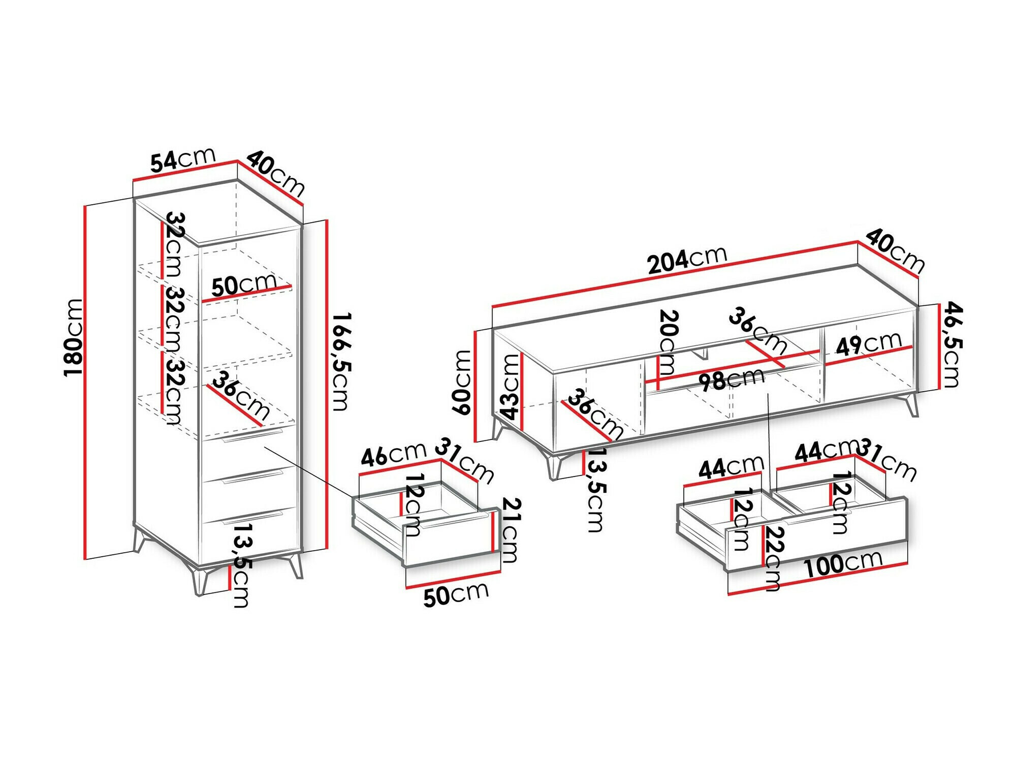60 x 204 x 40 cm