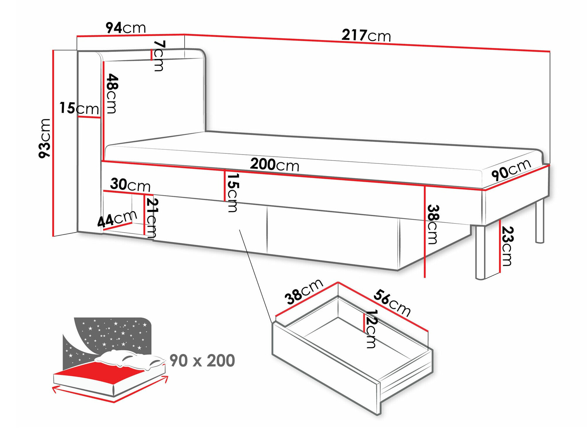 - 90 x 200 cm