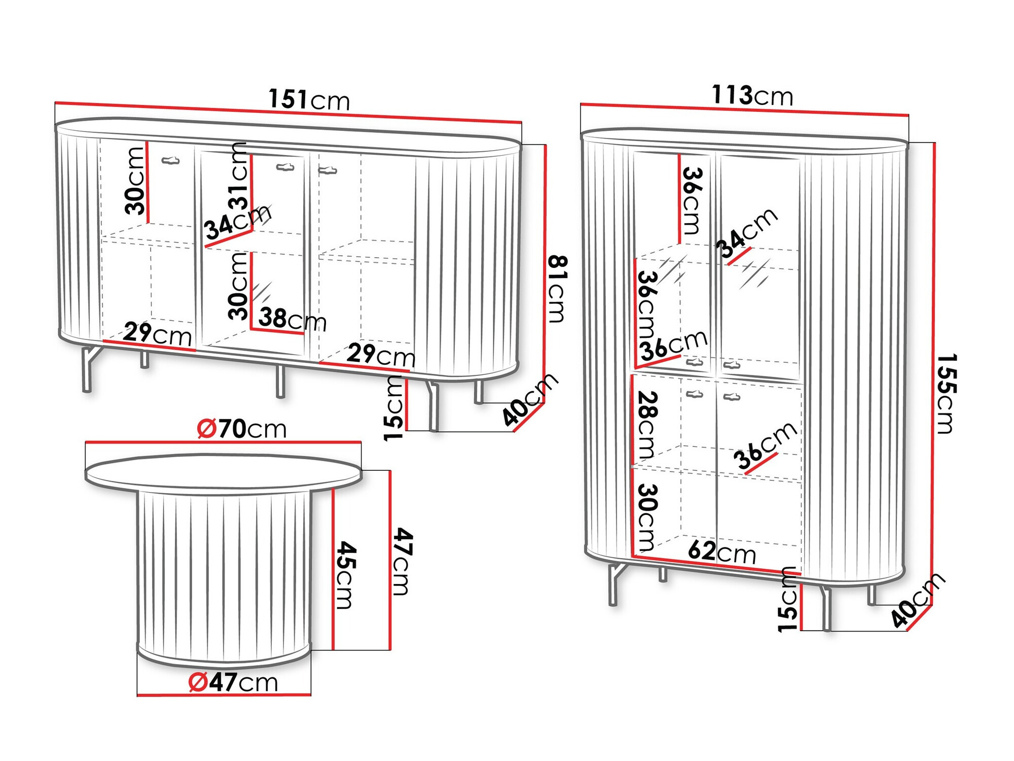 81 x 151 x 40 cm