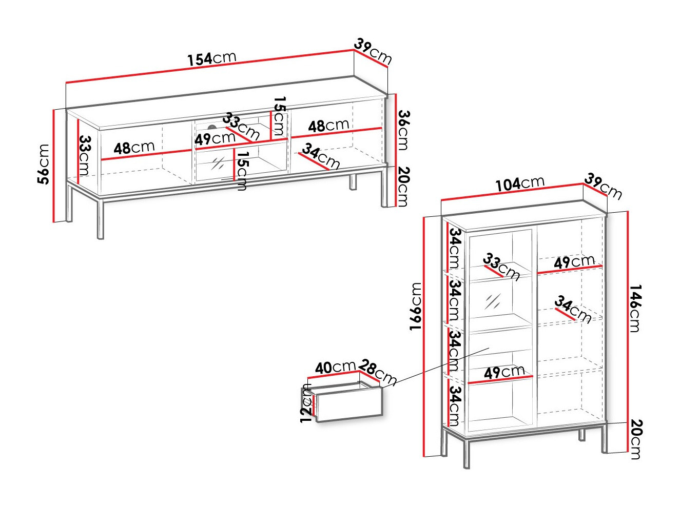 Cele două piese de mobilier sunt ideale. Estetic sunt foarte frumoase si au si o multime de depozitare. Lumina LED din interior îi conferă o notă elegantă. Montarea este oarecum greoaie, mai ales in vitrina, intrucat la inceput montajul orientarii usii de sticla nu este foarte clar; Dacă vrei la stânga sau la dreapta. Ei bine, există 3 lemne (rafturi) care nu sunt enumerate în instrucțiuni și sunt cheie pentru amplasarea ulterioară a LED-urilor. Pe de altă parte, ușa de sticlă a dulapului TV a venit fără ambele balamale. Deși i-am contactat, au fost foarte amabili și ne-au oferit mai multe alternative. În prezent, ele așteaptă livrarea. În general, achiziție foarte bună. Sunt frumoase.
