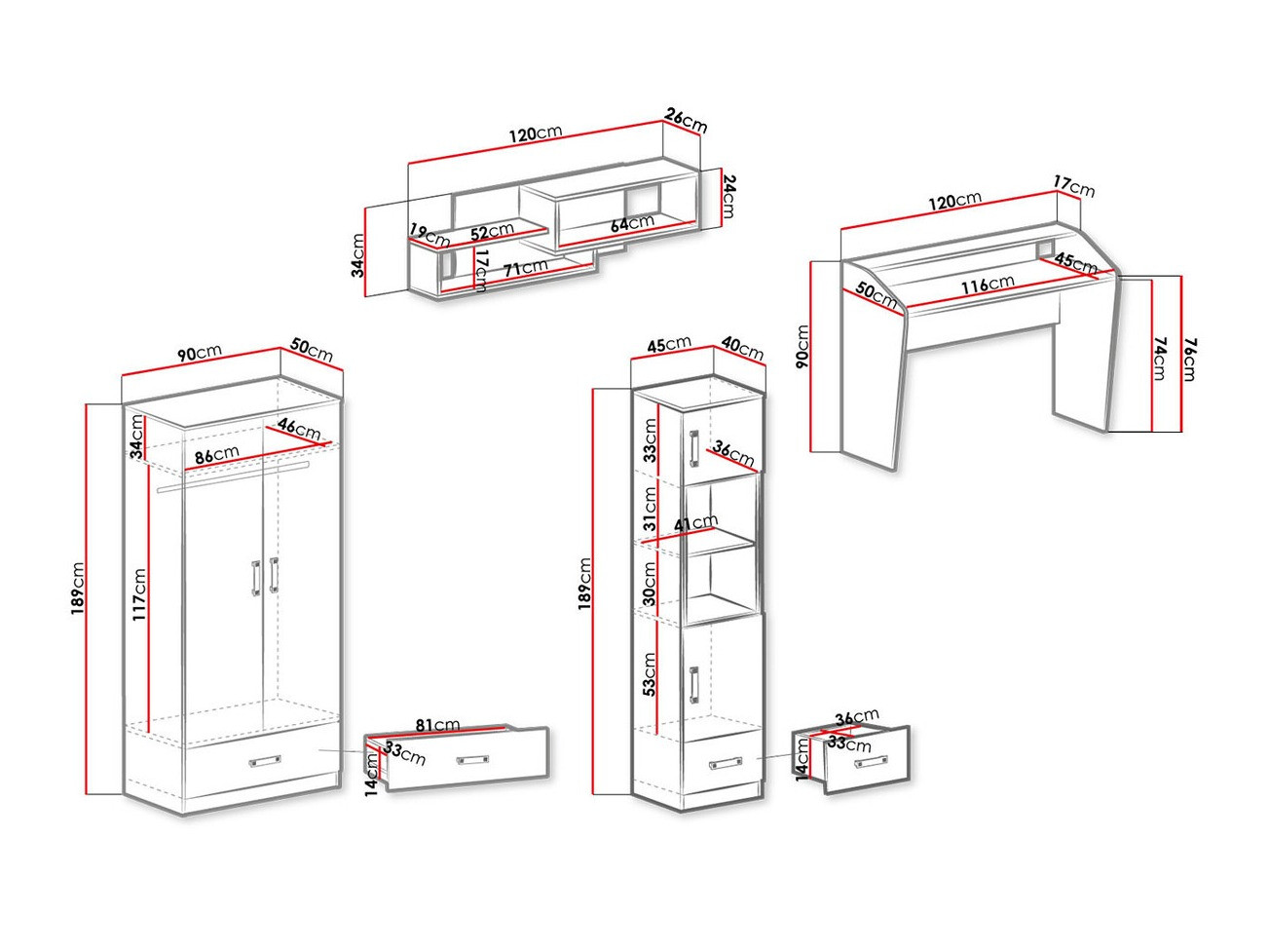 Dimensiunile cabinetului: