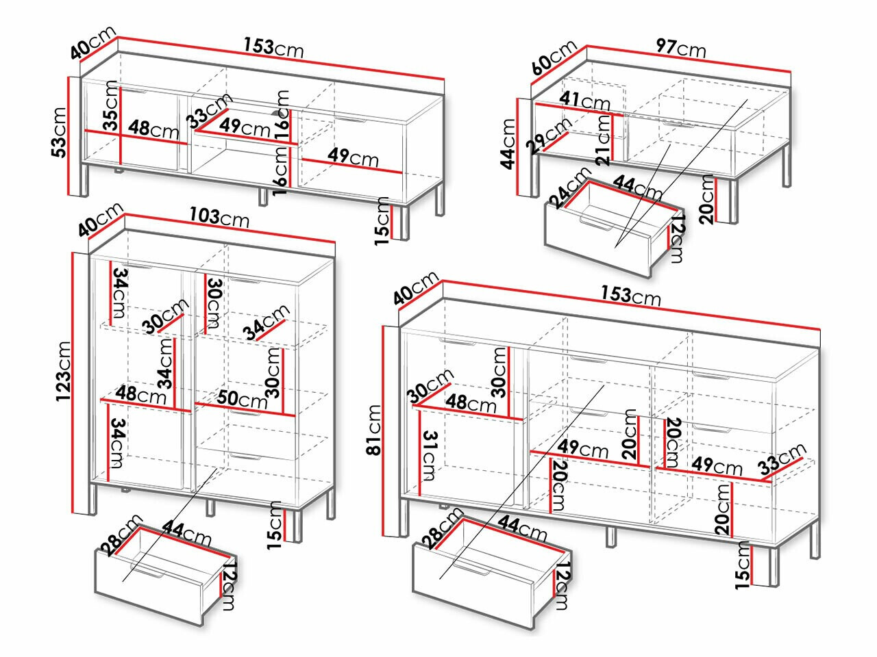 123 x 103 x 40; 81 x 153 x 40 cm