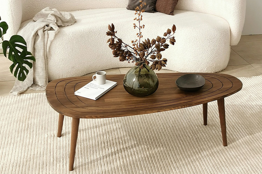 Lemnul masiv rămâne unul dintre cele mai apreciate materiale pentru măsuțe de cafea, datorită căldurii și caracterului său unic. Fiecare fibră spune o poveste, iar diferențele naturale dintre bucăți transformă fiecare piesă într-una aparte. Marginile de tip live edge, care păstrează forma naturală a copacului, sunt tot mai populare, tocmai pentru că evită liniile perfect geometrice și aduc un aer organic în living.