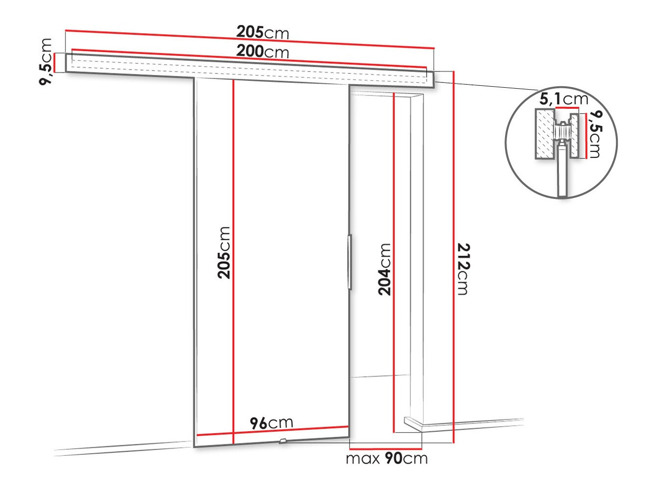 Dimensiuni sistem uși glisante:
