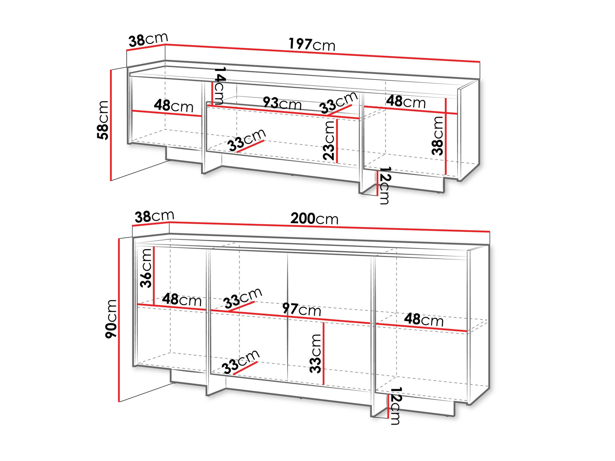 58 x 197 x 38 cm