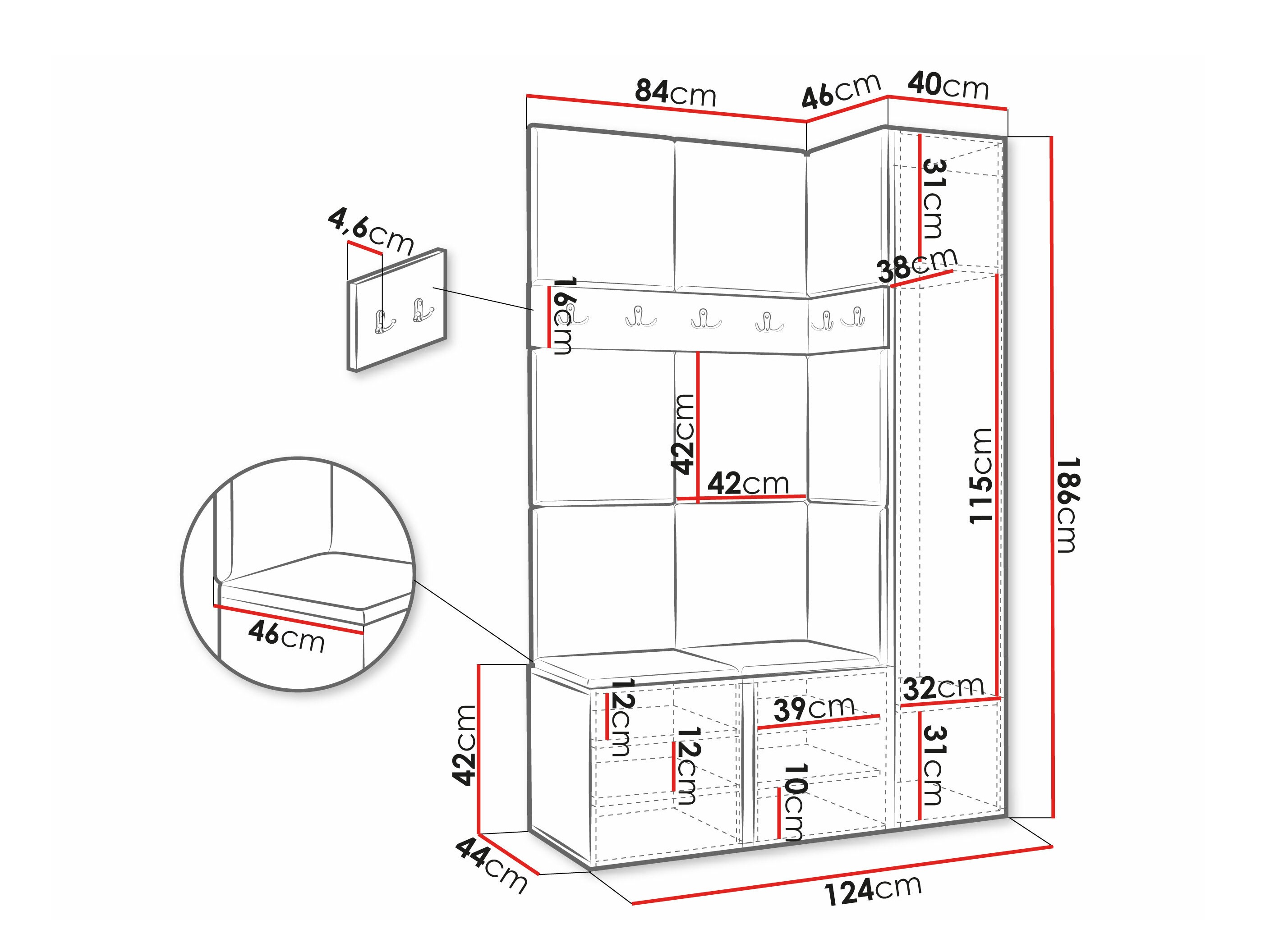 Mobilierul pentru hol arata bine si pare a fi de calitate. Noi am facut o mica modificare, am pus cuierul in partea de sus a panourilor, nu intre ele, sa fie mai mult spatiu pentru geci si paltoane. Singurul minus ar fi un pret prea mare, avand in vedere ca in spatele panourilor tapitate nu exista placaj, vin lipite direct pe perete si nici nu se ofera adeziv, trebuie achizitionat separat