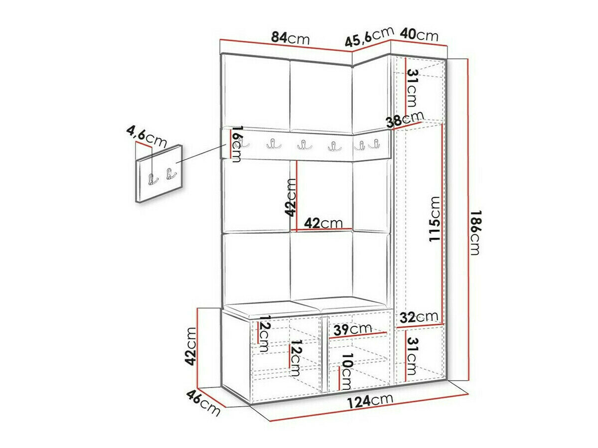 186 x 40 x 46 cm