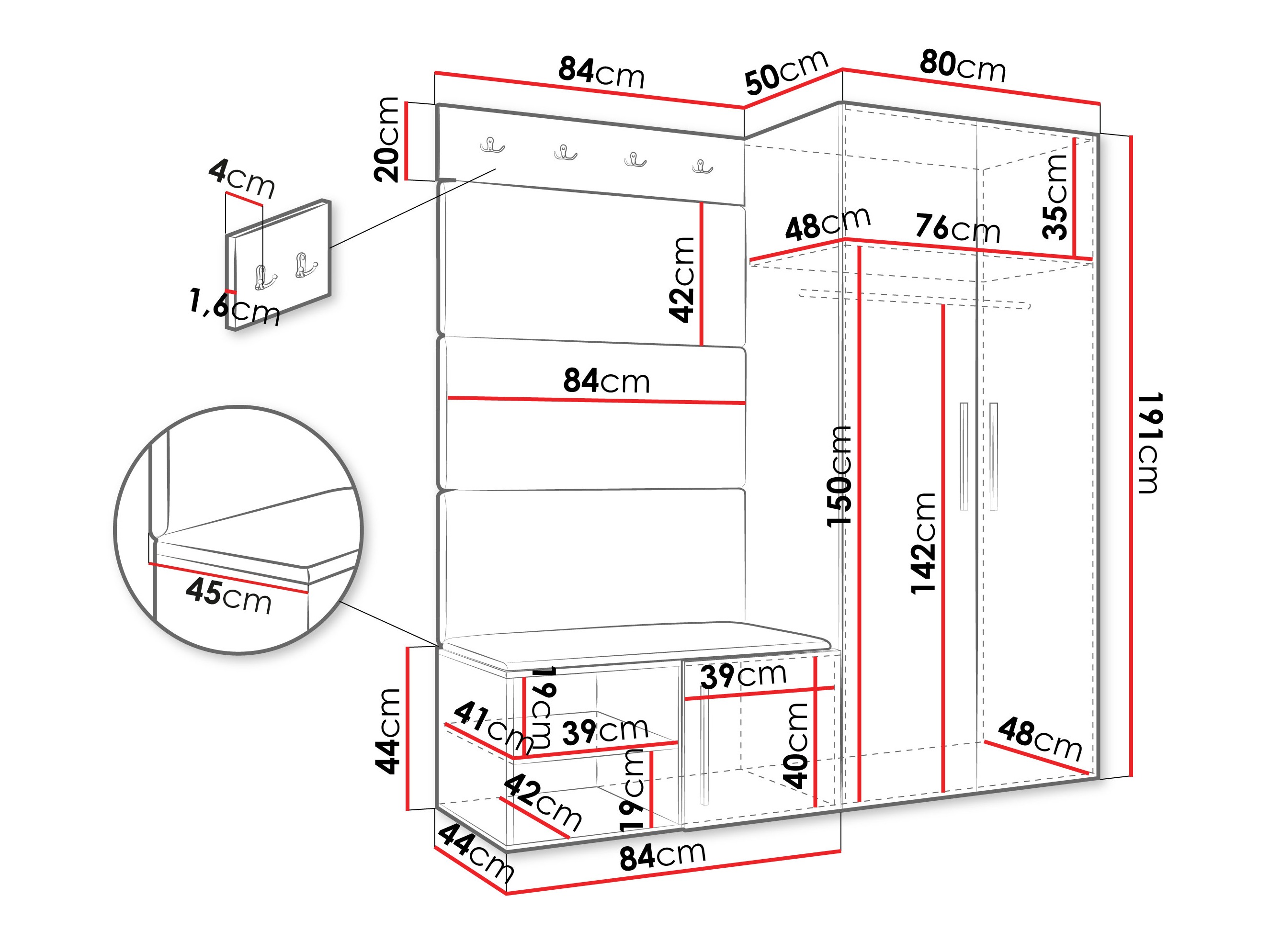 20 x 84 x 4 cm