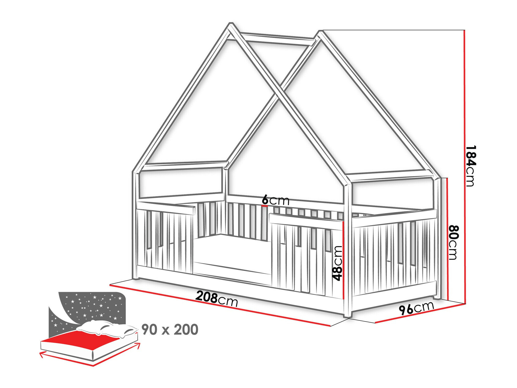- 90 x 200 cm