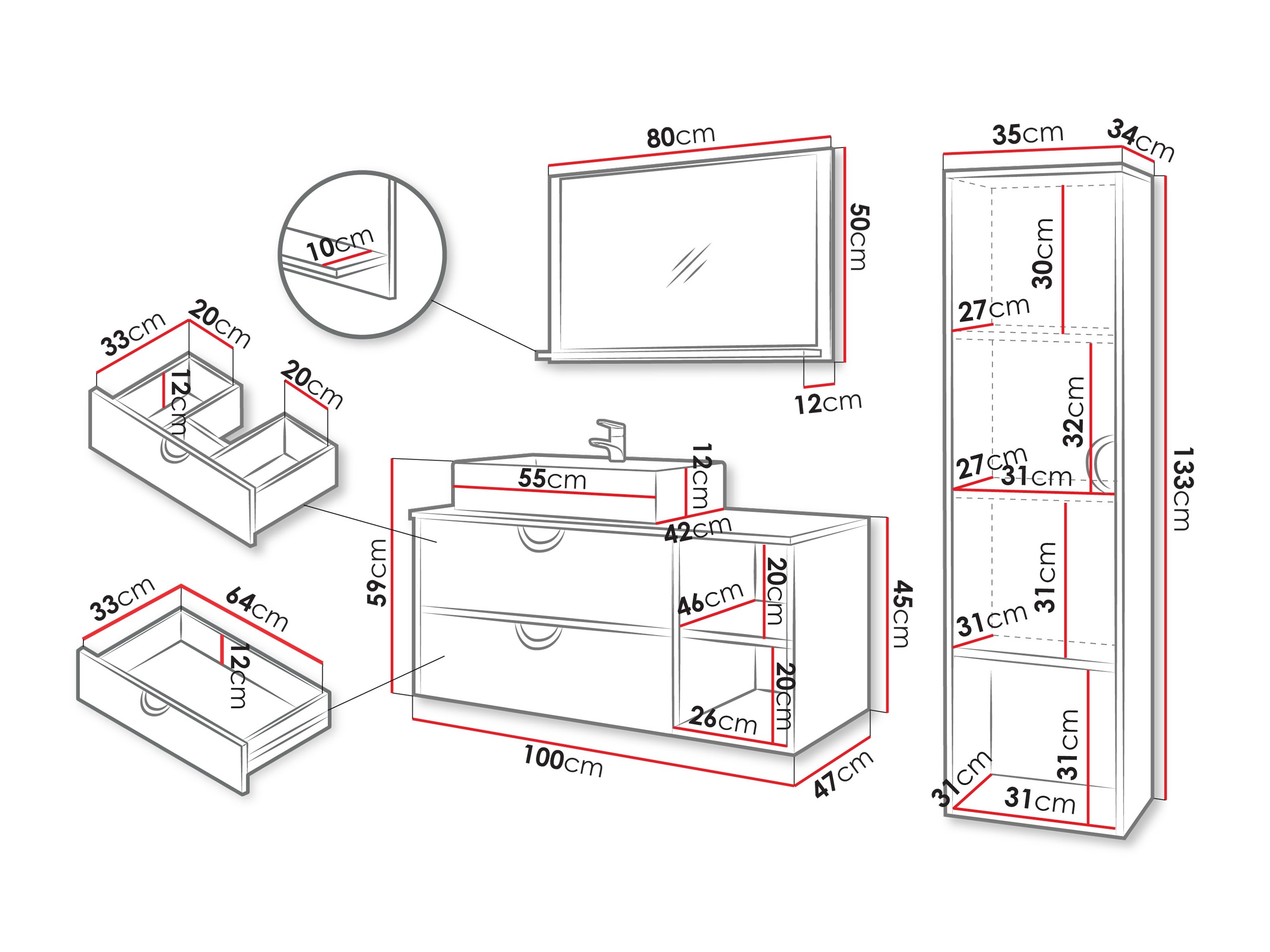 Dimensiuni cabinet lavoar: