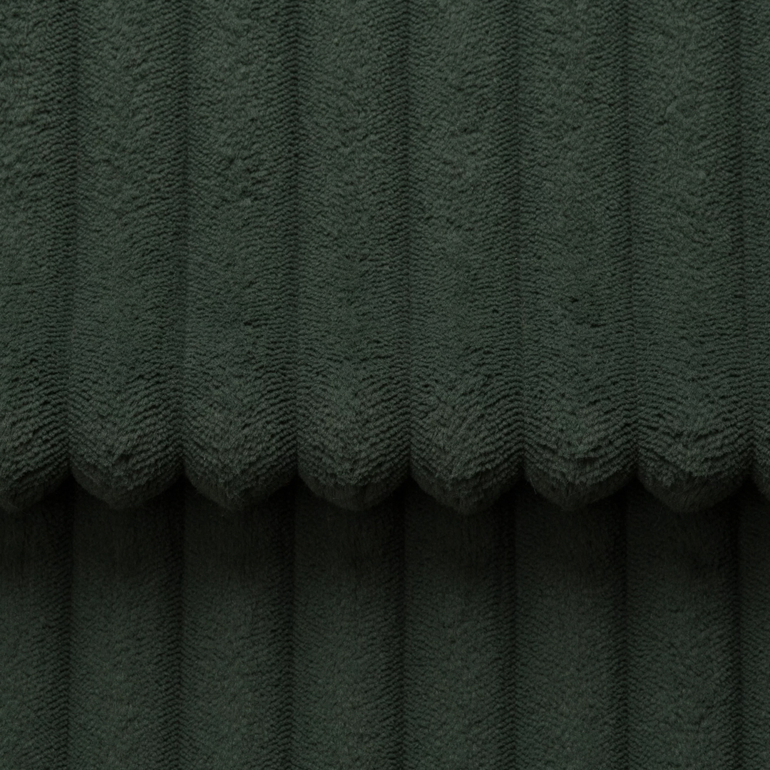 Textura moale a acestui material este definită de dungi reliefate, cu o lățime de aproximativ 2,5 cm, acoperite cu un finisaj plușat. Luciul discret adaugă o notă de rafinament, iar suprafața netedă permite materialului să își schimbe ușor nuanța în funcție de lumină. Este o alegere excelentă atât pentru interioare moderne, cât și minimaliste. Pentru întreținere, se recomandă curățarea suprafeței exclusiv cu produse delicate, special concepute pentru tapițerie.
