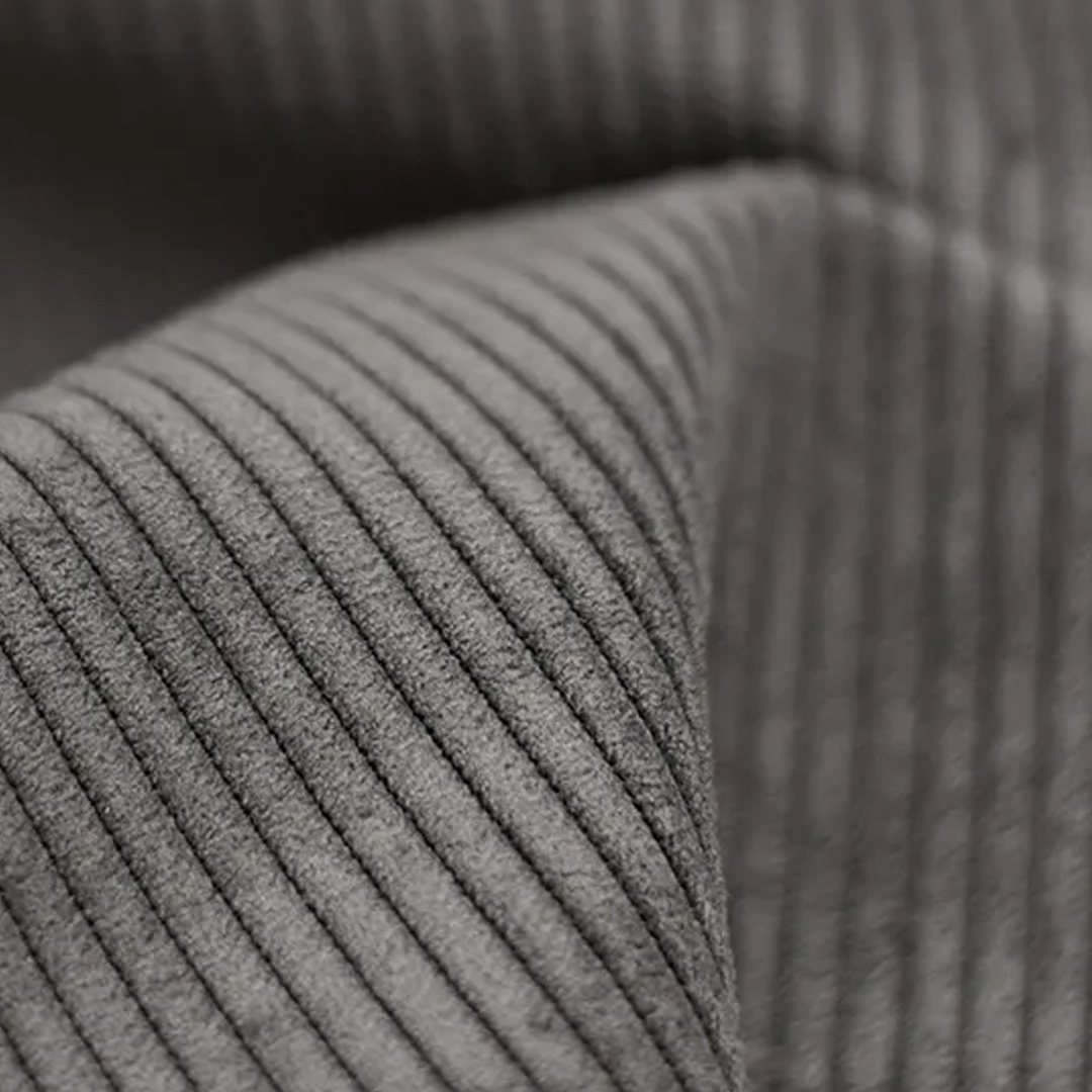 Structura delicată a materialului, compusă din dungi reliefate, conferă pieselor de mobilier un aspect distinctiv. Datorită suprafeței sale moi, materialul își poate modifica subtil nuanța în funcție de lumină. Este o alegere excelentă atât pentru interioare moderne, cât și minimaliste. Pentru a-i menține calitatea, se recomandă curățarea suprafeței exclusiv cu produse delicate, special concepute pentru tapițerie.